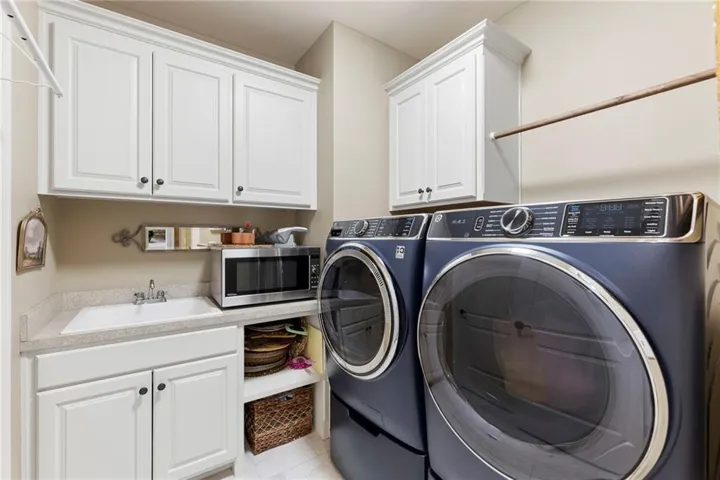 "LongDescription" => "Laundry room featuring wood walls, washing machine and dryer, and heating unit"