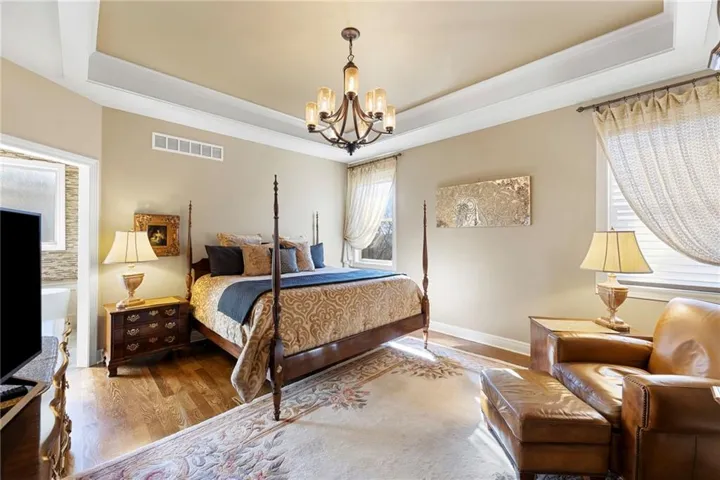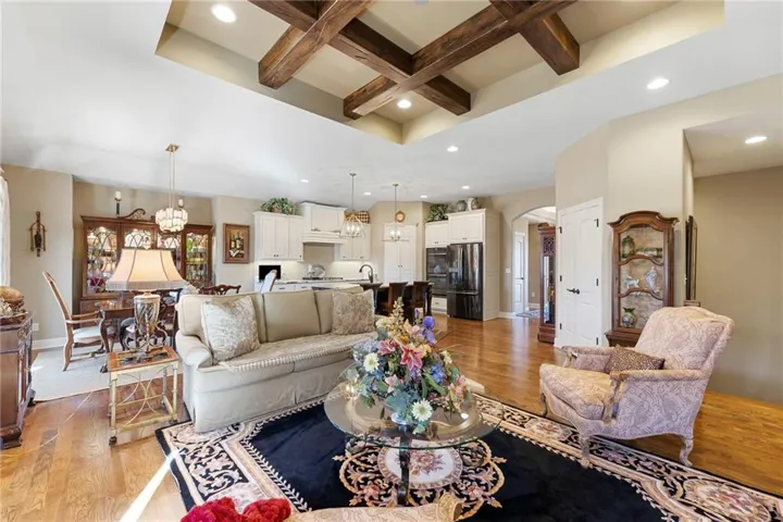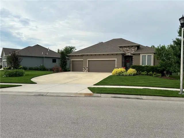 +"PublicRemarks": "Welcome to a beautifully finished ranch in Stonebridge Trails, where thoughtful upgrades, warm design, and effortless everyday living come together. From the moment you step inside, the main level feels open and inviting with beveled ceilings, a gas fireplace with TV hookup, and large windows dressed in custom Hunter Douglas drapes and blinds that elevate every room. The kitchen is the true heart of the home, featuring painted cabinets, a spacious island, double ovens and two pantries, with a layout that flows seamlessly into the dining and living spaces—perfect for casual mornings or hosting friends. The primary suite offers a peaceful retreat with two walk-in closets, a soaking tub, beautifully tiled walk-in shower, and plenty of space to unwind. A second bedroom and full bath on this level add comfort and flexibility for guests, work, or hobbies. The daylight lower level expands your living space dramatically with a generous family room, wet bar, and full bath—creating an ideal setup for entertaining, movie nights, or extended stays. Two former bedrooms were combined to create a second primary-style suite, oversized and private, making it perfect for multigenerational living, long-term guests, or anyone who wants a retreat that feels spacious and tucked away. Outside, the covered stamped concrete patio invites you to slow down and enjoy the beautifully maintained landscaping. Thoughtfully designed flower beds with stone accents and lush greenery wrap the home in color and charm throughout the seasons. Additional upgrades include central vacuum, smart doorbell, irrigation, exterior cameras, upgraded garage floors, and access to premier community amenities—multiple pools, trails, clubhouse, tennis courts, and more. This is a home where convenience meets elevated living in one of Olathe’s most sought-after neighborhoods."