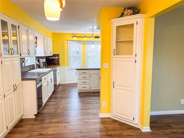 +"PublicRemarks": "Awesome house in great neighborhood, with !!NEW PRICE!!! Playful retro vibe! Kitchen and dining space with TONS of cabinets, large island with cooktop. Main level has updated flooring in common areas, great room with gas fireplace and sliding door to newer composite deck, formal living room, primary bedroom with slider door access to back deck, a gorgeous totally updated bath with large walk in shower, also convenient walk in closet that passes into an office or nursery, with another bedroom and main bath, downstairs garage level has retro recreation room with wet bar, mini fridge, a guest bedroom and private half bath, utility room has a safe/storm room.Furnace & AC only 3 yrs. Garage has large cedar closet and epoxy floor. House has extensive landscaping front and back. Fully fenced back yard. Deck runs across back of house, slider doors in great room AND primary bedroom, composite decking and metal railing. Interesting stone features on front of house."