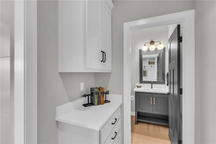 surface counters, custom cabinets, hardwood floors, stainless steel appliances. Bedroom level laundry. The finished\r\n