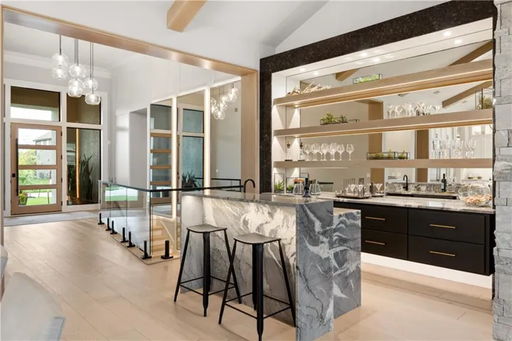 +"PublicRemarks": "The fabulous Clydesdale by Willis Custom Homes is coming to REGENTS PARK, LEAWOOD'S NEWEST LUXURY COMMUNITY, on level lot 6! Scheduled for Fall 2026 completion, this spectacular home features a 2+2 side entry garage and sits on a prime culdesac lot with a walkup walkout lower level, backing to trees. The Clydesdale exudes style and sophistication at every turn and is in a league of its own --Perfect for those exacting types that desire a distinctive, yet quality built home! Incredible curb appeal, grand entry, and a foyer that could be from a boutique hotel, this home will impress the most discerning of guests. The layout of this home brings you to a main level wet bar for ultimate entertaining! The oversized eating area and gourmet kitchen are full of high end finishes and details that you would expect in tihis caliber of home. The living area features soft lighting under the floating shelves and impressive linear fireplace. Both the kitchen and great room open up to the screened in lanai with stacking glass doors. Relax on the lanai next to the fireplace and enjoy the game! A separate prep/catering kitchen features loads of storage and additional appliances that make this home suitable for entertaining large groups. The primary bedroom features unique wall trim and a truly spa like bath with dual vanities, large shower, and soaking tub. Heading to the lower level, you will take the floating staircase to a quartz platform for yet another special entrance. The lower level features a full front and back bar for gatherings, a rec area, glass walled gym, and three oversized bedrooms with private baths PLUS a lower level covered patio with walk up to back yard! Regents Park is Leawood's newest luxury homes subdivision, just off the 135th St. corridor with everything at your fingertips. This neighborhood offers a location that can't be beat and luxury homes by Johnson County's finest builders. Don't miss this opportunity to own a stunning Clydesdale in Leawood!"