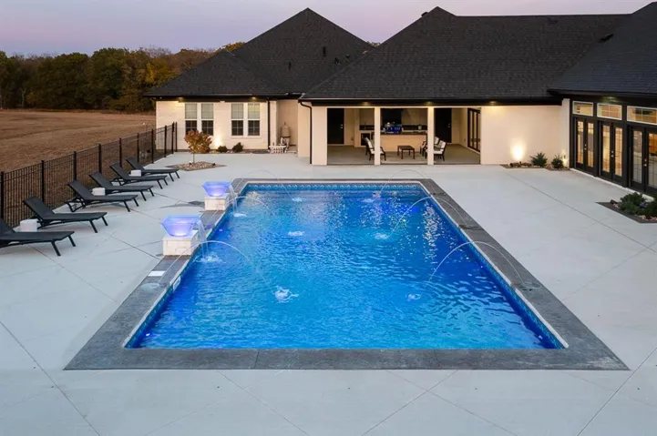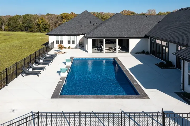 +"PublicRemarks": "LUXURY 5-BED ESTATE ON 15 ACRES WITH MODERN AMENITIES & RESORT-STYLE LIVING! If you’ve been searching for a high-end home that blends wide-open space with top-tier comfort, this stunning 6,000+ sq ft single-level residence delivers it all. Set on 15 peaceful acres, this estate feels like your own private resort, offering room to breathe, play, and relax in total privacy while still staying close to everyday conveniences. Inside, you’ll find expansive living areas designed for both hosting and unwinding, a true gourmet kitchen with two large islands and a massive walk-in pantry, plus heated floors in every full bathroom for year-round comfort. The home is loaded with modern upgrades, including full home automation, motorized blinds, whole-house audio, custom inset bedroom lighting, two HVAC systems, and two on-demand water heaters. Movie nights are incredible in the dedicated home theater, and outdoor living shines with a covered outdoor kitchen overlooking the custom inground pool with lighted fountains. A separate pool house adds convenience for guests, and the oversized 1,100 sq ft 6-car attached garage gives you all the storage you’ll ever need. The 60x42 shop/barn is perfect for hobbies, equipment, or additional workspace. With 15 acres of beautiful land, this estate offers space, luxury, and a lifestyle that’s hard to match—all in a prime rural setting with great access to surrounding communities."