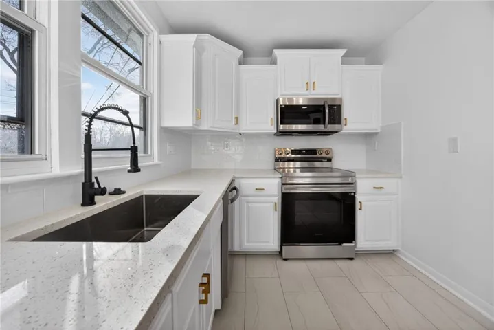 Inside, you’ll find hardwood floors, fresh interior paint, and a bright, inviting living room highlighted by large bay windows and a striking accent wall. The renovated kitchen features stainless steel appliances, quartz countertops, abundant cabinet space, and a functional layout ideal for everyday living and entertaining.\r\n