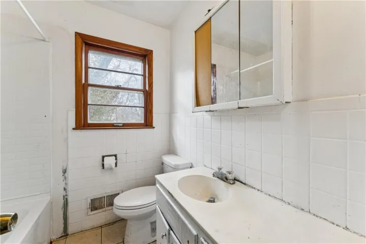 "LongDescription" => "Full bath featuring vanity, a textured ceiling, and light tile patterned floors"