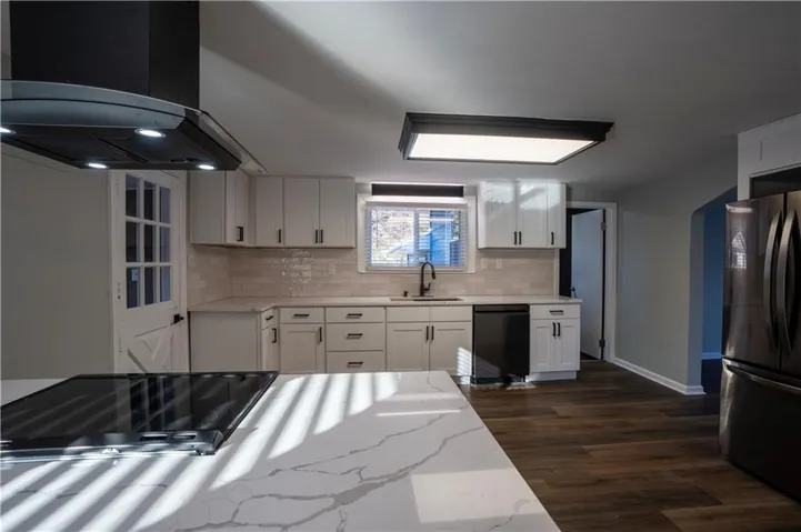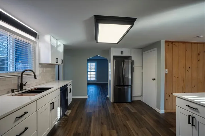 +"PublicRemarks": "Completely renovated home with approx. 2,800 sq. ft. of finished space. Updates include new LVP, carpet, lighting, and paint. Kitchen features quartz countertops, large sink, soft-close cabinets, subway tile, LED lighting, and black stainless appliances. Main level includes living room with oversized window, office, primary suite with walk-in closet, updated baths, and additional bedroom. Finished attic offers built-in beds, den space, mini-split, and storage. Finished basement includes full bath, closets, exterior door, and two non-conforming rooms for flexible use."