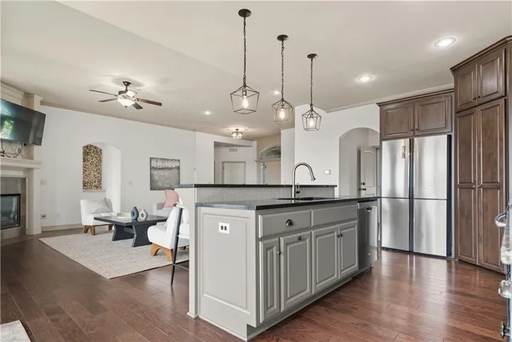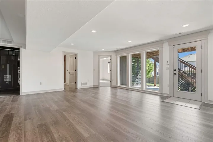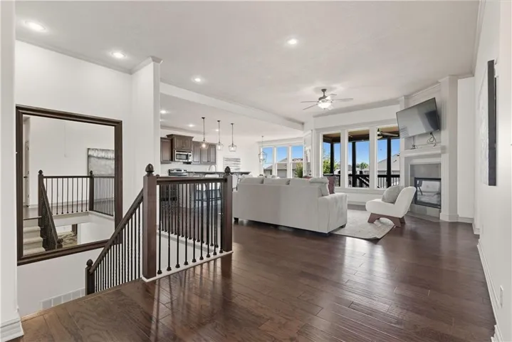 +"PublicRemarks": "Open concept and move in ready Reverse 1.5 by Summit Homes with fresh paint, carpet, lighting and so much more! 2 bedrooms are on the main level and 2 downstairs. Enjoy the covered Lanai off your living room and Master bedroom. Updated kitchen with granite, stainless appliances and walk in pantry. All bedrooms and bar have upgraded granite countertops. Fabulous media room/living room with 85" big screen that stays! Three car garage, fenced yard and tons of storage and all located in a fabulous convenient Lees Summit location!"