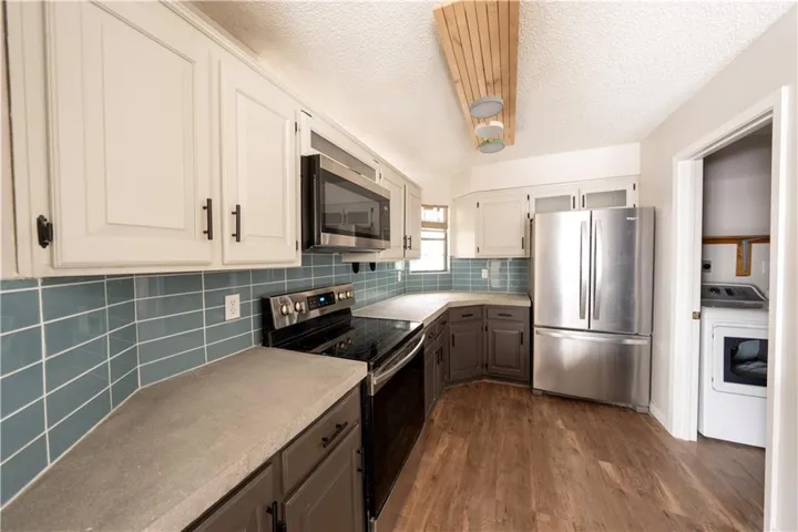 The kitchen offers newer appliances, excellent cabinet space, and unique poured-concrete countertops that create a rustic, custom look. These countertops can also be easily finished, stained, and polished to resemble granite in the color of your choice, giving future owners a simple path to personalize the space.\r\n