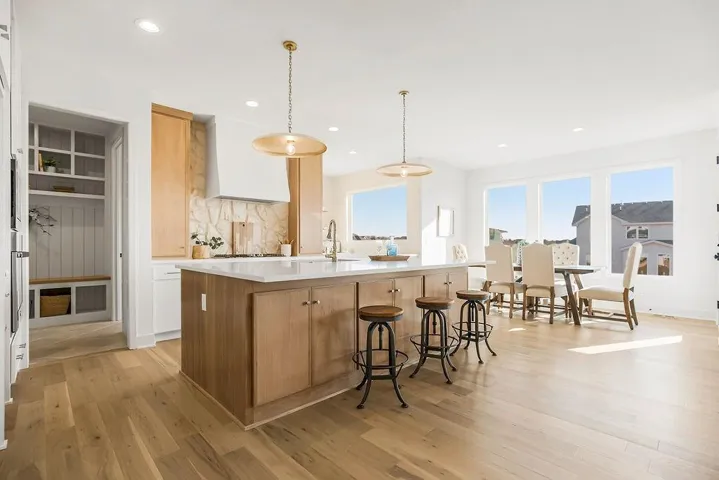 The "Magnolia" has so many custom features that you will absolutely love! And practical features like high efficiency HVAC, Pella Windows, 8' Tall Garage Doors. It's bright, open and great for entertaining. It features 4 bedrooms and 3.5 baths and a main floor private office which is located off the front entry. Walk into a stunning great room, chef's dream kitchen with huge island and site finished white oak floors, dining room surrounded by windows and service bar with pantry prep area. The mudroom in the back hall has a large built-in boot box. Spacious primary suite with spa like master bath are upstairs with 3 other spacious bedrooms and laundry room. Top of the stairs has loft area/reading nook or study area for the kids. Home has a private covered deck off the back of home with stairs to the yard and an irrigation system for a beautiful lawn and landscaping. The home backs to the southwest and the large and open LL is ready for finish. \r\n
