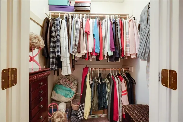 +"PublicRemarks": "Well-maintained ranch home offering true single-level living with a low-maintenance brick and vinyl exterior. The kitchen opens to a spacious living room with surround sound, projection screen, and wiring, and provides direct access to the covered patio. Primary bedroom features two walk-in closets, while the second bedroom offers an oversized walk-in closet for excellent storage. Enjoy the covered patio overlooking a nicely landscaped, fenced backyard—perfect for relaxing or entertaining. Friendly neighborhood with a community pool. All appliances stay, including stove, refrigerator, microwave, washer, and dryer. Garage includes pull-down attic stairs for additional storage."