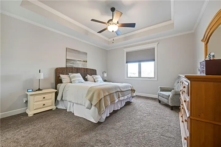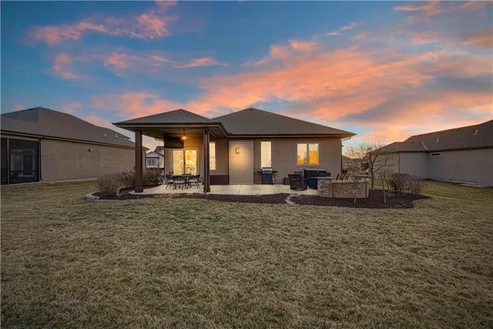 +"PublicRemarks": "Welcome home to this Gabriel Homes Richmond floorplan free-standing villa in Cedar Creek – The Meadows, featuring new interior paint throughout much of the home. This low-maintenance stucco and stone exterior welcomes you with a deep covered front porch and upgraded leaded-glass front door. The main level offers mixed-width hardwood floors, a spacious office or 4th bedroom with built-ins, and a full bath with tiled shower and granite vanity. The kitchen shines with a large walk-in pantry, expanded island, granite countertops, custom painted cabinetry with under-cabinet lighting, and stainless appliances including a KitchenAid induction cooktop and Bosch oven and dishwasher. The adjoining living room features a stacked-stone gas fireplace. The main-floor primary suite includes a tray ceiling, a huge walk-in closet connected to the laundry room, and a spa-like bath with double quartz vanity and tiled walk-in shower. The finished basement offers a wet bar, large living area, two generous bedrooms, and a full bath. Enjoy a private backyard backing to a school with a covered patio, expanded paver patio, and lush perennial landscaping. Deep painted garage is EV-wired. HOA includes lawn care and snow removal. Resort-style Cedar Creek amenities include pools, pickleball, trails, lake, gym, clubhouse, and more—an exceptional value."