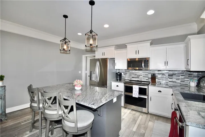 Only five years old and meticulously cared for, no detail has been missed in this private retreat. Features include a finished walkout basement, tasteful low-maintenance landscaping, and a full front and back yard sprinkler system, AMAZING backyard!! Whether you want solitude or host gatherings around the fire - this sanctuary will not disappoint! The main level offers an open-concept design with excellent flow and ample space for gathering, maintenance free laminate flooring main & 2nd levels. The owner’s suite features a spa-like bath, separate shower with 2 shower heads and private access to a screened-in deck! Complete interior paint was done summer of 2025. Backing to trees, the home also offers seasonal winter views of Smithville Lake! This is the whole package - You deserve this home!
