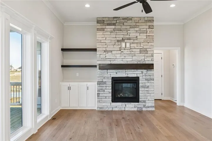 +"PublicRemarks": "*ASK ABOUT OUR BUILDER RATE BUYDOWN INCENTIVE* COMPLETED! The "KENNA" by Robertson Construction sits on a PREMIUM LOT with a Beautiful setting BACKING TO LAKE! Super location close to local amenities and shopping! This Gorgeous Reverse 1.5-Story, with an unobstructed Lake View, offers 4 bedrooms, 2 on the Main Level, 3 Full Baths and is built with 2x6 exterior walls, an upgraded insulation package along with a super high efficiency heating and cooling system! An Open Layout features Floor to Ceiling Windows showing off the peaceful view, Stone Fireplace accented with Floating Shelves, Kitchen Island, Solid Surface Countertops, Custom Built Cabinets, WALK-IN PANTRY and Wide Plank Engineered Hardwood Flooring. Oversized Covered Deck is accessible from both the Master Suite and Breakfast Area. The PRIVATE Master Suite has a luxurious Master Bath and WALK-IN Closet that conveniently adjoins to the Laundry Room. You will find more Finished Square Footage in the WALKOUT Basement featuring Floor to Ceiling Windows, 2 more Bedrooms, Full Bath, LARGE FAMILY ROOM and a generous amount of storage! PATIO at WALKOUT. Located in the highly-rated Liberty North School District! SUBDIVISION POOL. ACTUAL PHOTOS OF HOME!"