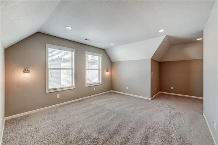 +"PublicRemarks": "Rare 1.5-story in sought-after Megan Valley backing to a scenic farm setting! Quality built by Craig Brett, this open floor plan offers over 3,200 sq ft above grade with 5 bedrooms and 3.5 baths, including a true first-floor primary suite for ideal main-level living. A vaulted great room anchors the home, filled with natural light and perfect for entertaining or everyday living. The main-level office/flex room (or 5th bedroom) is ideal for working from home or guests. Enjoy peaceful mornings and evenings on the screened patio overlooking open farmland—rare privacy in Johnson County. The kitchen features a pantry, while the upper level boasts a giant bonus room perfect for a second living area, playroom, or media space. The 1,742 sq ft unfinished basement provides outstanding potential for future expansion and added value. Oversized 2.5-car garage completes this outstanding opportunity!"