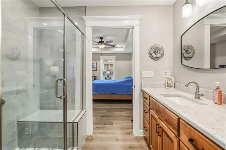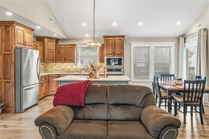 +"PublicRemarks": "Easy Living, Elevated Style~ Welcome Home! Say hello to modern comfort made easy in this beautifully designed, newer-construction 2 bed, 2 bath, ranch home where style meets accessibility. Thoughtfully built for effortless living, this home invites you in with no-step entry, wide open spaces, and a layout that simply works for today’s lifestyle. Inside, natural light fills the open-concept living area, highlighting vaulted ceilings, a cozy travertine stone fireplace, and high-end finishes throughout. The stunning kitchen is a showstopper, featuring Amish-made custom cabinetry, a travertine backsplash, Quartz countertops, stainless steel appliances with an induction cooktop, and a large island perfect for gathering, entertaining, or everyday meals. The primary suite offers a spacious ensuite and walk-in closet, while the second bedroom is ideal for guests, a home office, or hobbies. Every detail was designed with comfort and convenience in mind, from custom cabinetry throughout to energy-efficient systems and added gutter guards. Step outside and enjoy a private patio, a fully fenced backyard perfect for furry friends, and a side yard with room to garden or unwind, on a nice corner lot. The attached 2-car garage offers room for storage, and yes, washer and dryer stay! Accessible, low-maintenance, and absolutely inviting, this home is ready for you to move in, relax, and fall in love."