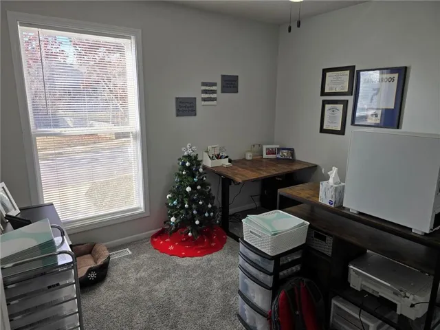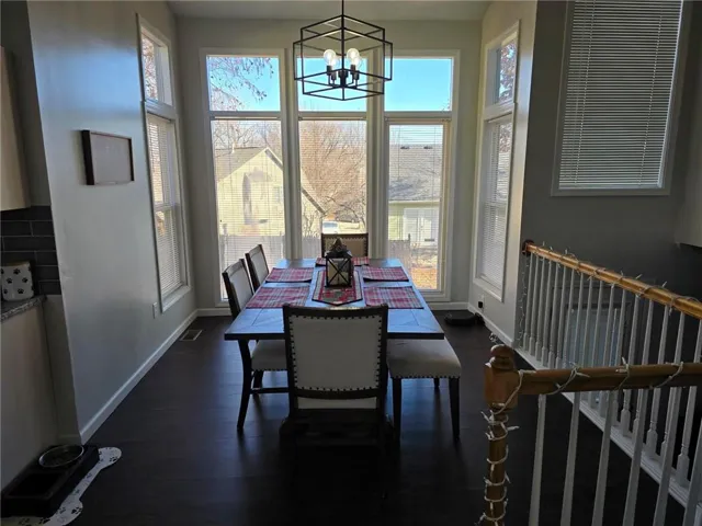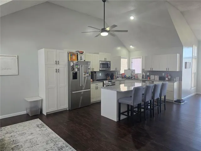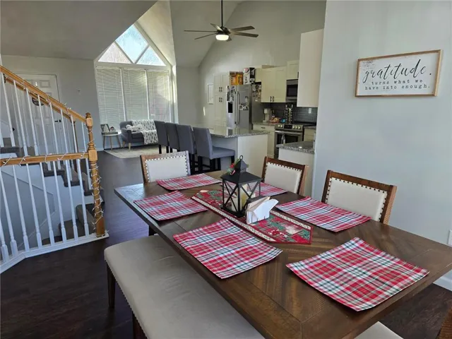 Step into a bright, inviting home with soaring vaulted ceilings, walls of windows, and a layout that makes everyday living feel easy. The main level features an open-concept kitchen with white cabinetry, granite-style countertops, stainless steel appliances, bonus sitting room and a large center island perfect for meal prep, homework, or entertaining. Just off the kitchen is a spacious dining area framed by oversized windows that bring in tons of natural light.\r\n