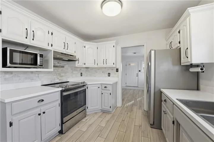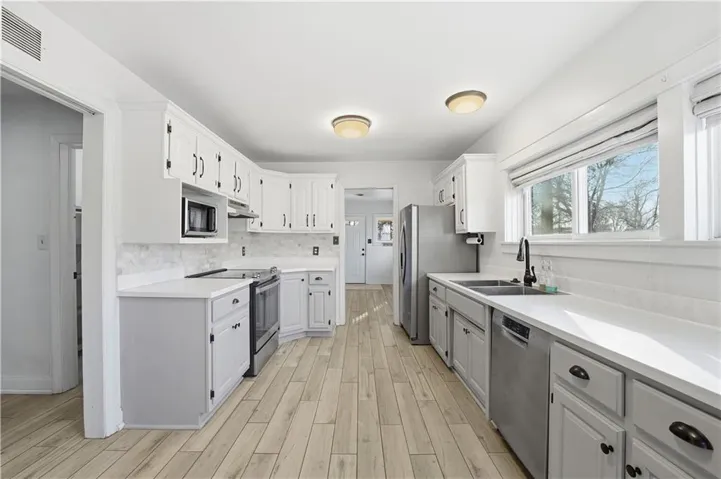 +"PublicRemarks": "Welcome home to this stunning, move in ready Ranch tucked far back from the road on 1.6 private acres, offering peace, space, and modern updates throughout! The large kitchen is a dream, featuring stainless steel appliances, a deep stainless sink, granite countertops, tile backsplash, walk-in pantry, desk area and tons of cabinet space! Industrial shelving, and space for a cozy breakfast table make this the perfect spot for morning coffee. Refrigerator to stay. Enjoy a spacious living/dining room combination anchored by a gorgeous marble fireplace. This home offers beautifully updated large bedrooms and a fully updated bathroom. A generous laundry room also provides excellent storage or additional pantry space. Washer and dryer to stay as well, making this home truly turnkey. The additional rec room is perfect for a home office, workout space, or playroom, the options are endless. Outside features a deck overlooking a large private fenced backyard, ideal for relaxing or entertaining. The property includes an attached garage plus an additional shed, perfect for storage or a small workshop. Private. Updated. Main level living. Move-in ready. This one checks all the boxes! Property qualifies for 100% financing -with the seller including all appliances, you could move into a new home with little to no money out of pocket! This one is a must see!"