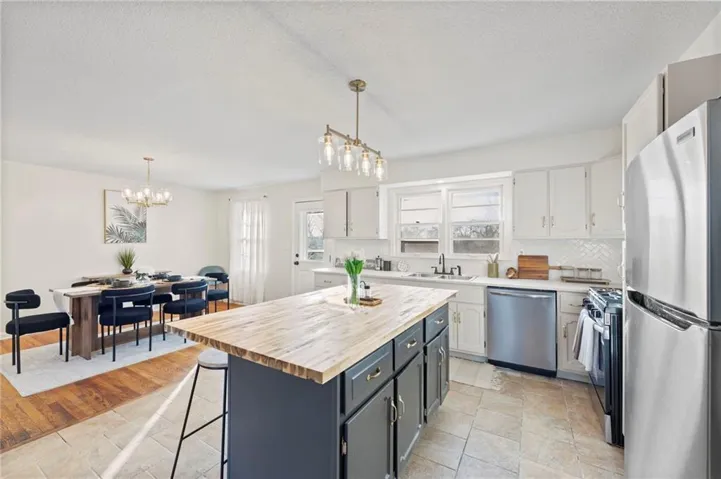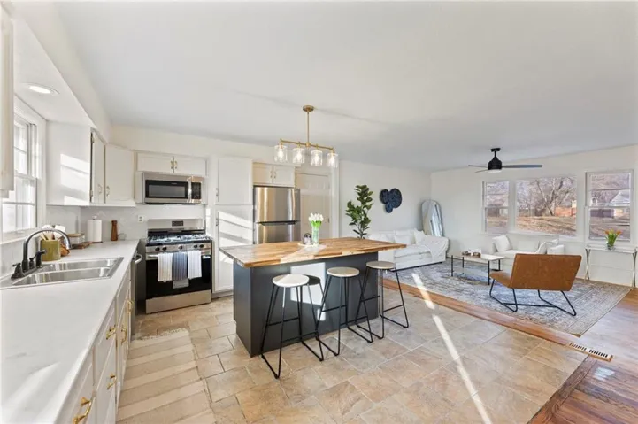 +"PublicRemarks": "Previous Buyers' Contingency Expired. No inspections were done. Completely remodeled with a lot of new! Beautiful, open floor plan; true ranch on a huge lot with a 26 x 14 outbuilding that has electricity! New roof on both the home and outbuilding! New exterior paint ( on both as well). New driveway, garage, sidewalk, and step. New interior paint; new light fixtures and fans; new hot water heater; fully remodeled bathrooms; new landscaping; new kitchen island; new stainless appliances; new and upgraded electrical panel…too much new to mention! The unfinished basement is the same square footage as the home and is stubbed for a bath. It’s an incredible opportunity to create more beds/baths. This home is perfectly situated near Barry Road and N. Oak Trafficway and near everything you need: shopping, schools, highways, airport, and minutes from downtown! It sits on a cozy street in a quaint neighborhood with no HOA and homes with a lot of character! Remodeled with style and heart; you don’t want to miss this one! Homeowner is an agent. Professional pics to follow!"