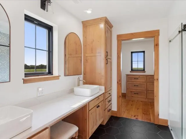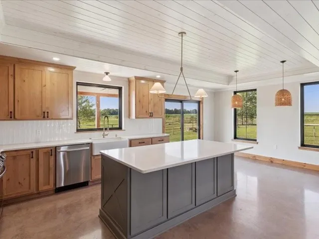 +"PublicRemarks": "Welcome Home. This 3 bedroom, 3 full bath home is brilliantly customized with incredible attention to detail and is nestled on 8+/- acres for livestock (with the option to purchase more acreage.) As you enter your new home, you’ll be greeted with natural colors, beautiful cottage ceilings, a custom fireplace with book shelves and heated concrete floors. The flow right into the kitchen with a beautiful island is perfect for entertaining. The stunning custom pantry/laundry room is spacious with storage for everything. Easy access right next to the garage door and full bathroom. Upstairs you’ll find all 3 large bedrooms, the master bath has a custom vanity and cabinets in the closet, a dream! The attention to detail in every room will not disappoint. There is a fun bunk bed area in the 3rd bedroom, your kids will love! Store all your equipment in the lean-to right off the 2-car garage. With a 3 stall horse barn, large tack room and arena all fenced off with plenty of pasture, the opportunities are endless! Come look at this beauty and be prepared to fall in love!"