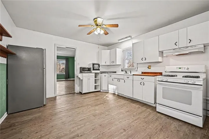 +"PublicRemarks": "Recently updated Gladstone ranch in a great neighborhood. NEW HVAC prior to closing. Home sits on a corner lot and has been landscaped to create amazing curb appeal which will show in the spring. Home features 3 good sized bedrooms with a large Living and Dining Room combo. The bathroom has been updated recently. The Kitchen has the original charm complete with metal cabinets and cast iron farm sink. The garage has a newer storm shelter and still has plenty of room to park a vehicle, including a new car charging station. Backyard has newer fence and has plenty of trees providing shade to cool off on the patio. The shed gives you extra storage for lawn equipment plus landscaping and gardening tools. The home has a ton of new updates in the last few years. The list includes new flooring, newer roof, new tankless water heater, newer windows, refrigerator, washing machine, counter dishwasher & microwave, fencing, storm shelter and Emporia Level 2 EV Car charger. All appliances stay including refrigerator and washer/dryer. The City of Gladstone has nice amenities and NO E-Tax."