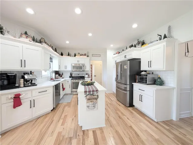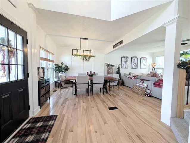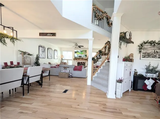 Experience a perfect blend of modern sophistication and neighborhood charm in this meticulously updated two-story located in the heart of Lee’s Summit’s highly sought-after Longview Farms neighborhood. The main level with mixed neutral toned plank hardwood floors throughout, has been thoughtfully reimagined into an open-concept sanctuary, where natural light fills the living spaces and flows seamlessly into a gourmet kitchen outfitted with custom cabinetry, sleek countertops, and designer finishes. High-end architectural details abound throughout the home.\r\n