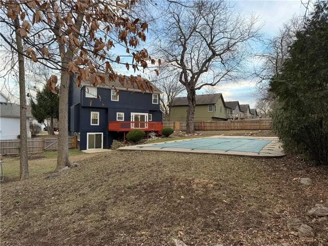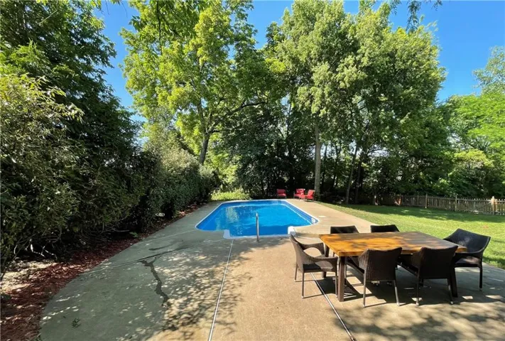 +"PublicRemarks": "Tucked away on a cul-de-sac in the sought-after Blue Valley school district, this Willow Bend beauty is centered around a truly exceptional outdoor retreat. Set on a lush, .36-acre treed lot with fenced backyard featuring a beautiful in-ground pool surrounded by an expansive patio—perfect for summer gatherings, morning swims, or relaxing evenings under the trees. The deck overlooks the serene backyard and pool, offering the ideal space for dining, hosting, or simply unwinding. Inside, the home continues to impress with a welcoming great room showcasing a brick fireplace framed by built-in bookshelves. The kitchen has been completedly updated with white cabinetry, quartz countertops, a large island, stainless steel appliances, and pantry. The finished walkout lower level is designed with entertaining in mind, providing direct access to the pool and lower patio. The primary suite offers a walk-in closet and spa-inspired bath highlighted by marble countertops, dual vanity, tile floors, a corner whirlpool tub, and a stylish sliding barn door that adds warmth and privacy. Additional highlights include updated windows, newer garage doors, and updated lighting. Move-in ready as washer, dryer and refrigerator all stay! Close to Bluhawk, restaurants, shopping, schools, and parks. Green Meadows and Creekside park with trails, creek, green space, two playgrounds, and picnic shelter is just a short walk down the street. Don’t wait on this one!"
