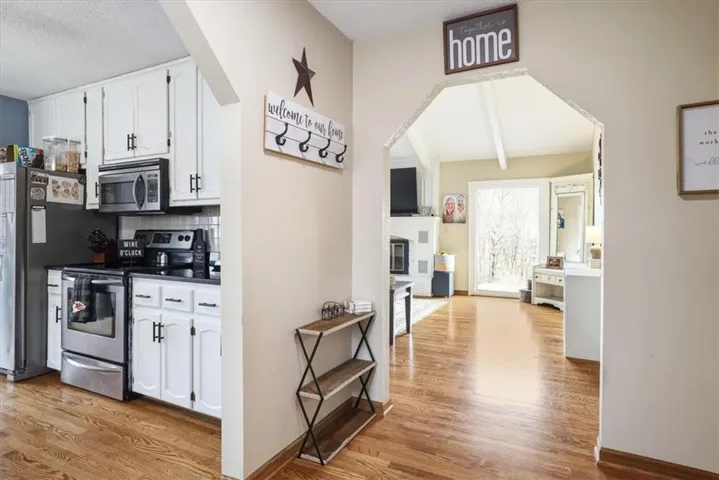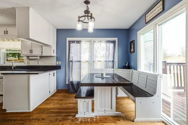 +"PublicRemarks": "Welcome home to this clean well maintained home on over 3 acres in the Kearney school district. The home has 3 ample bedrooms and 3 baths. The finished lower level with fireplace and access to a covered patio will be a great place for entertaining. You will enjoy beautiful views from the large deck overlooking the stocked pond. There are endless possibilities with the large barn and unfinished loft space. Schedule your showing today!"