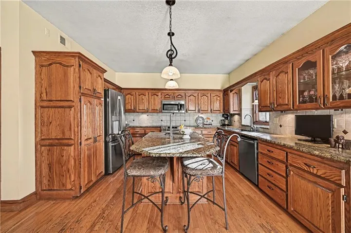 +"PublicRemarks": "NOW OFFERED AT A COMPELLING NEW PRICE reflecting today's market. This home is a one owner beautifully maintained with so many upgrades. This home offers the perfect combination of comfort, style and location. With renewed pricing and timeless appeal, it's ready for the next owner to enjoy. LOCATED IN RAINTREE LAKE, this 4 bedroom 3 bath home offers you so much. Curb appeal with tasteful side 3 car garage with lots of storage. Nice landscape & 5 zone remote sprinkler system, Ring camera & security. Fiberon vinyl deck w/Sunsetter remote awning & natural gas grill. Walkout basement with sunroom. Major systems updated in the past 5 years - appliances, mechanicals and roof! Walk in the entry to natural light and well defined spaces for everyday living. Formal Dining as well as eat in kitchen. Kitchen features stainless updated appliances, tile floor, lots of custom cabinets. Quartz and marble counters give this home the updated style in today's market. Primary suite is spacious and relaxing with ensuite featuring updated finishes and heated towel racks. Deck on main levels invites outdoor gatherings and the walkout finished basement with full wet bar and access to sunroom opens up for lots of living space. RAINTREE LAKE also features a private lake to enjoy with all the water activities, clubhouse, zero-entry pool, playground, walking trails & common areas throughout. Perfect community for your enjoyment!"