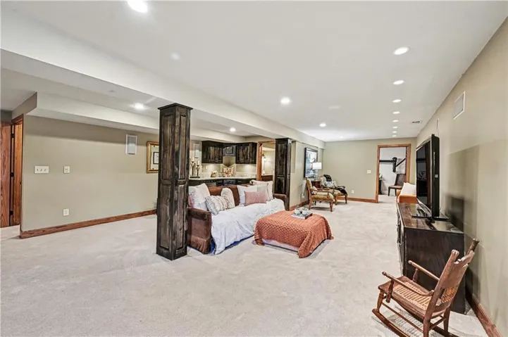 Inside, the floor plan is open, bright, and highly functional, with spacious rooms designed for comfortable living and gatherings. Large Andersen windows and Pella doors frame peaceful views and flood the home with natural light. While the home reflects the luxury style of its original build, it has been exceptionally well cared for and offers an outstanding canvas for cosmetic updates to align with today’s design preferences. Key features include:Hardie Board siding for long-term durability, Side-entry garage with workshop (potential to expand to 3–4 cars or add lifts), Granite countertops and two fireplaces, Home office, media room, and wet bar, Whole-house and outdoor sound system, Invisible pet fence and gutter guards, High-efficiency HVAC systems. The walkout/walk-up lower level adds flexibility with a private entrance, full bath, and large bedroom—ideal for guests, multi-generational living, or future enhancements. Quietly tucked away with serene pond views, yet minutes from major highways, shopping, and dining, this property offers an irreplaceable setting, substantial square footage, and the opportunity to update and elevate at your own pace. For buyers seeking space, privacy, and an exceptional lot—with the ability to customize cosmetic finishes—this is a rare and compelling opportunity.