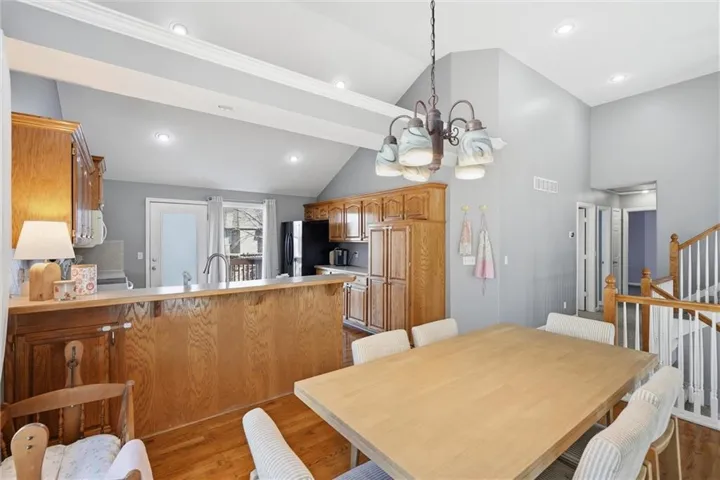 +"PublicRemarks": "Welcome Home! This beautifully maintained home is tucked into the desirable Rock Hill neighborhood with inviting curb appeal and the perfect balance of comfort and functionality. Inside you'll find tasteful paint colors and a welcoming atmosphere, perfect for both daily living and entertaining. The vaulted ceilings in the family room and kitchen help showcase all of the natural light the the home offers. Enjoy the kitchen and dining area's hardwood floors and get cozy around the family room's gas fireplace. The master bedroom features a spacious ensuite bathroom and large walk-in closet. The finished walkout basement provides plenty of extra living space with another large family room, full bathroom, and 4th bedroom. Need even more space? Check out the finished sub-basement! Enjoy the outdoors from the deck off the kitchen or covered patio. The fenced backyard is large and flat, perfect for pets and kids to play! Don't miss the new HVAC (2024), new roof (2023), new kitchen sink and dishwasher, and new wifi garage door opener! You'll love having access to the neighborhood pool and community events! Located close to shops, dining and highway access. Don't miss out—this one's ready for you to move right in!"