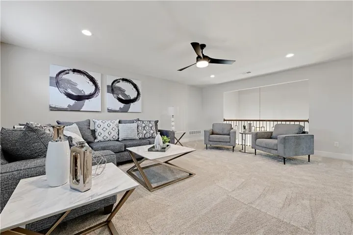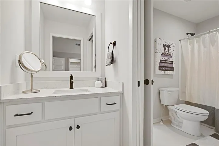 The upstairs features three additional bedrooms, one of which has its own private bathroom. The other bedrooms share a Jack and Jill bathroom with separated vanity spaces. The upstairs also features a loft space perfect for entertaining!\r\n