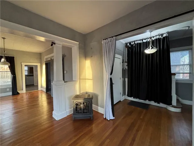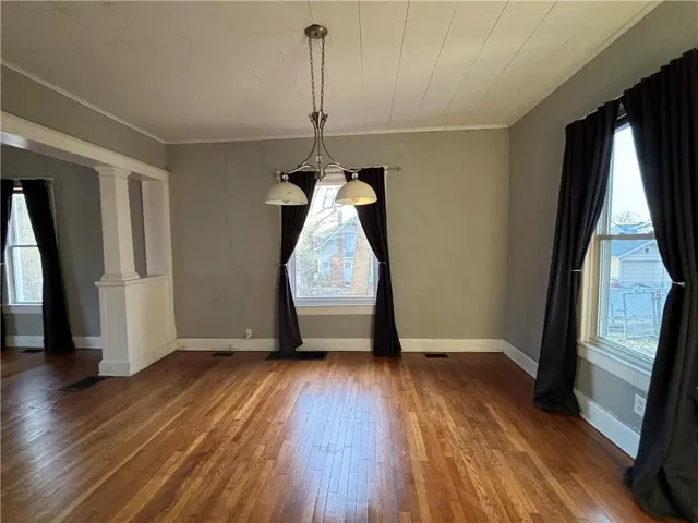 +"PublicRemarks": "Fall in love the moment you pull into the driveway of this well-cared-for home with space, storage, and potential galore! This 3-bedroom, 1-bath home features a rare 3-car garage (including one in the lower level), a large fully fenced yard, and a layout that’s both cozy and functional. Hardwood floors flow through the kitchen, dining area, living room, and hallway, adding warmth and timeless charm. Downstairs, you’ll find a huge unfinished basement just waiting for your ideas—whether that’s a rec room, workshop, home gym, or extra living space. Well maintained and full of possibilities, this one is ready for its next chapter. Professional photos and walk through coming Soon!"