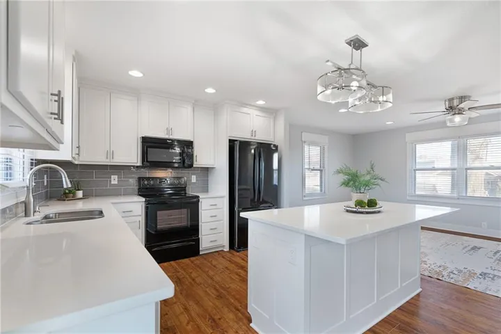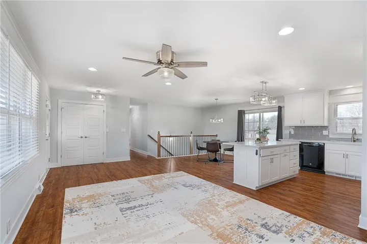 +"PublicRemarks": "Welcome to this beautifully remodeled home in the heart of De Soto. Full interior remodeled in 2022 included all kitchen appliances, cabinetry, bathrooms, flooring, doors, paint, and lighting. 3 beds, 3 full baths. Light and bright living and dining areas. kitchen island has room for 3 counter height stools. Fireplace in family room. The yard features a west facing patio and deck accessible from main floor or basement walk out. Chain link fence around roughly half of back yard. Mature trees."