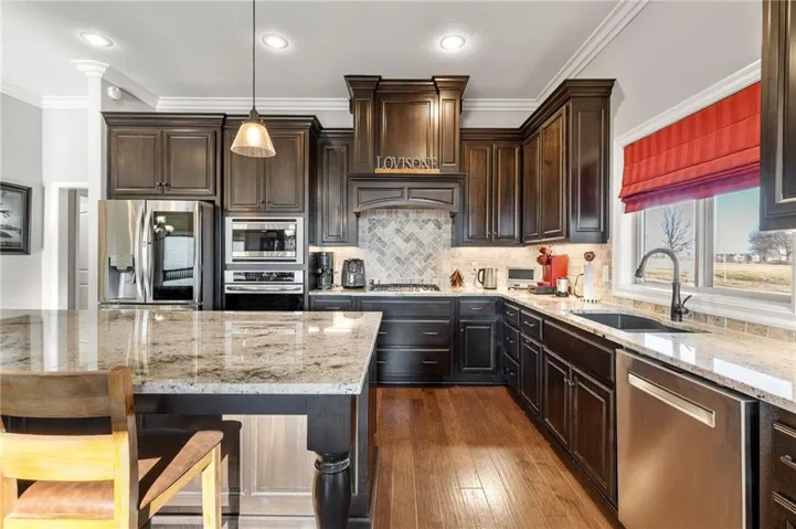 +"PublicRemarks": "Well-maintained 4 bedroom, 3 bathroom home located in a desirable Lee’s Summit neighborhood. Built just 6 years ago, this home offers a modern layout with spacious living areas and thoughtful finishes throughout. The open kitchen and living space provide great functionality for everyday living and entertaining. The main level offers 2 bedrooms and 2 full bathrooms, while the finished lower level includes 2 additional bedrooms, a full bath, and a spacious entertainment area complete with a wet bar, perfect for gatherings or movie nights. Enjoy outdoor living with two back patios overlooking a spacious yard.nDon't miss this opportunity!"