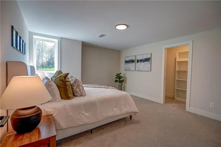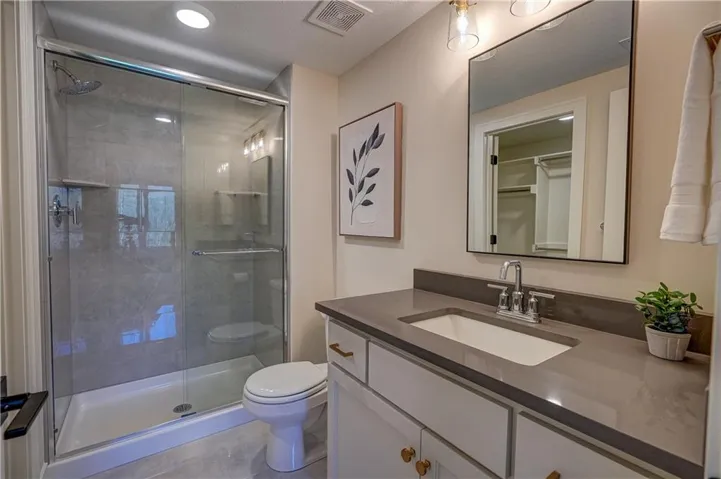 The spacious primary suite is a true retreat, featuring a luxurious bathroom and an oversized walk-in closet. A second bedroom and full bath is also located on the main level. A spiral staircase leads to the walkout lower level, offering 1,425 SF of additional living space with a large recreation room, wet bar, game area, two additional bedrooms, two full bathrooms, a half-bath, and generous storage.\r\n