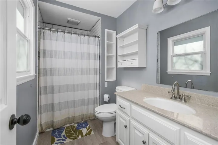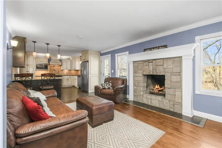 +"PublicRemarks": "The spacious ranch you've been waiting for! This home offers over 2400 sq ft, 4 bedrooms, 4 full bathrooms and a 2 car garage. You will love the wood floors throughout along with the beautifully updated kitchen featuring custom kitchen cabinets, granite countertops and peninsula island. Primary bedroom, two additional rooms and 2 full baths on the main level. Upstairs you'll find an oversized bedroom perfect for teens or home office along with another full bath. Fully finished basement offers walk out, mini bar, full bathroom and non conforming 5th bedroom. Outside enjoy a large yard and the cutest little shed! Excellent value for space and condition located in non HOA subdivision in Lee's Summit."