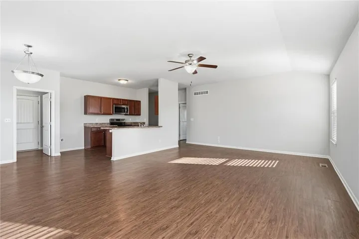 The main level features an open living and dining area that flows easily into the kitchen, creating a comfortable space for everyday living and entertaining. The kitchen is equipped with stainless steel appliances and ample cabinet space, while the primary suite includes a full bathroom and a spacious walk-in closet. Two additional bedrooms and a second full bath provide flexibility for guests, a home office, or growing needs.\r\n