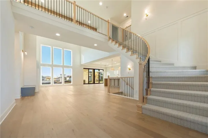 The "Woodland" Modern 1.5 Story by JFE Construction is here on a Daylight Lot backing to trees and trail! As you enter the foyer with a soaring ceiling you are greeted by an exquisite grand staircase open to the 2nd level. Stunning 2 story windows in the Great Room with ample natural light with views of the back yard to trees. Cozy up to the fireplace in the Great Room. Kitchen boasts a expansive island, chef's dream, walk-in pantry and walkout your slider doors to your covered exterior living space with another fireplace! Primary En-Suite behind the Great Room with separate vanites, standalone spa tub, walkin closet & even more natural light. Behind the kitchen you'll find your additional bedroom on the main or office, full bath, full laundry room next to boot bench off the interior garage door. Up to the 2nd level you have 3 more bedrooms all with walk-in closets, 1 with Jack & Jill bath, 1 with it's own bathroom next to the Loft. \r\n