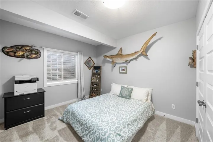 Welcome to this beautifully designed 5 bed/3bath home with a 6th nonconforming bedroom and a finished basement in the highly sought after Eagle Creek community! So much attention went into the design of this home. From the elegant floor to ceiling stone fireplace in the living room to a climbing rock wall in the basement, no detail was overlooked. Some upgrades you'll love include the workshop with work benches and metal pegboard, irrigation system with wifi controller and rain sensor, natural gas grill line/hook up, landscaping, fence with three gates, dedicated 220 volt power in garage, and all the luxurious detailing throughout the home. Three bedrooms are on the main level with an open floorplan for the living room, dining area and gourmet kitchen. The spacious primary bedroom with ensuite bath has private access to a covered patio. The home backs to serene greenspace and the covered patio with gas fire pit is the perfect place to begin or end a day. The finished basement has a large recreation room, two additional bedrooms and a bathroom. The bonus room is ideal space for a home office, home gym, gaming room, or a non conforming 6th bedroom. The dedicated workshop is perfect for those hobbyists that need their own private space to create. Eagle Creek has trails, playgrounds, 2 swimming pools and is located near the new park, Red Hawk. Its only minutes from the restaurants and shops in downtown Lee's Summit. This meticulously maintained home is move-in ready and waiting for you. Schedule your showing today!\r\n