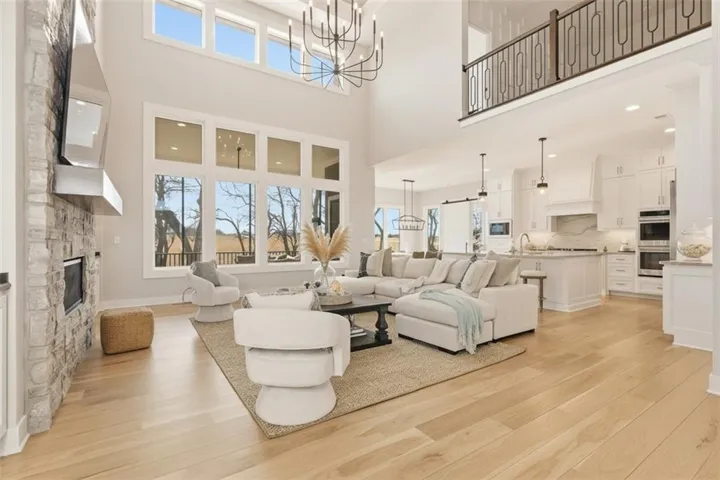 +"PublicRemarks": "This stunning, high-quality Geer-built 1.5-story home perfectly blends comfort, style, and functionality. Featuring 6 bedrooms, 6.1 baths, and a rare 4-car garage on a quiet cul-de-sac lot, it’s designed to impress. Inside, the open-concept layout seamlessly connects the kitchen, dining, and living areas—ideal for lively gatherings or cozy nights in. The great room boasts a floor-to-ceiling stone fireplace, while the chef’s dream kitchen shines with sleek stainless steel appliances, a spacious island, a huge walk-in pantry, and plenty of space to create culinary delights. Just off the kitchen, a flexible bedroom, office, or playroom with a full bath and statement wall offers a perfect guest retreat or quiet workspace. Practical touches include a spacious mudroom with built-in boot niche and a convenient half bath on the main level. Upstairs, all bedrooms are ensuite with walk-in closets, plus a versatile loft and second laundry. The finished daylight lower level is made for entertaining, with a full bar featuring exotic granite, a cozy rec room, theatre, game area, additional bedroom, full bath, and ample storage. Outdoor living is equally inviting, with a charming screened-in porch and fireplace, or a lower patio overlooking tranquil backyard views. With upgrades galore—coastal-themed wallpaper, decorative mirrors, modern courtyard garage doors, and striking feature walls—this home is truly a dream. Priced well below reproduction cost, especially with a similar Bristol plan selling for $1.8M across the street, it’s a rare find near the neighborhood pool, shops at BluHawk, and easy highway access."