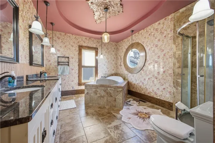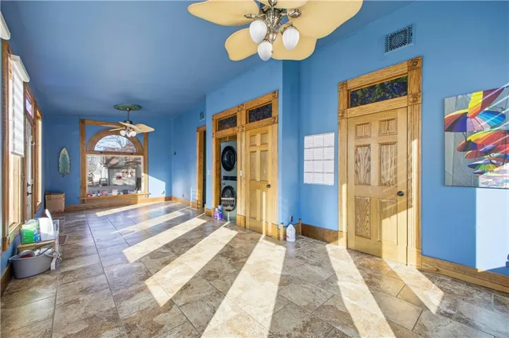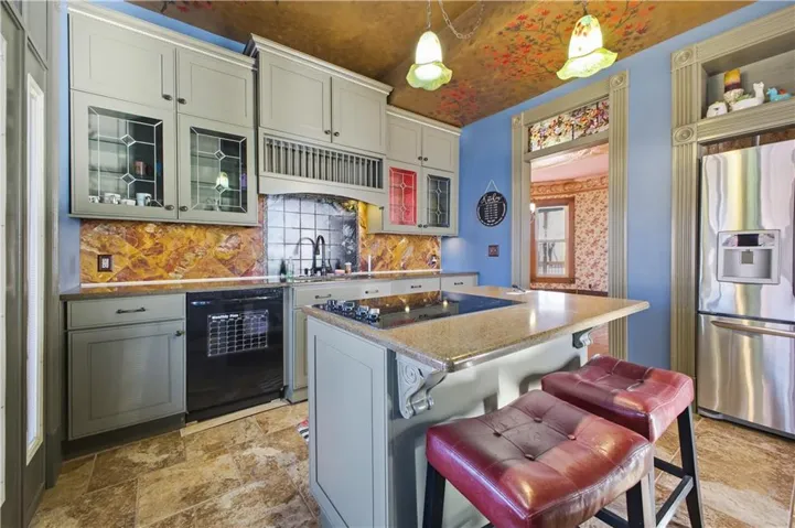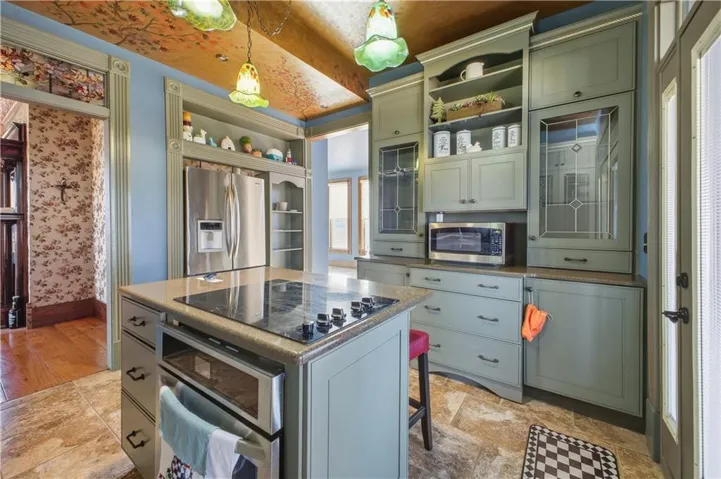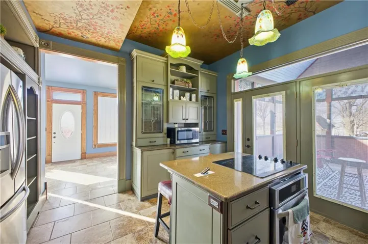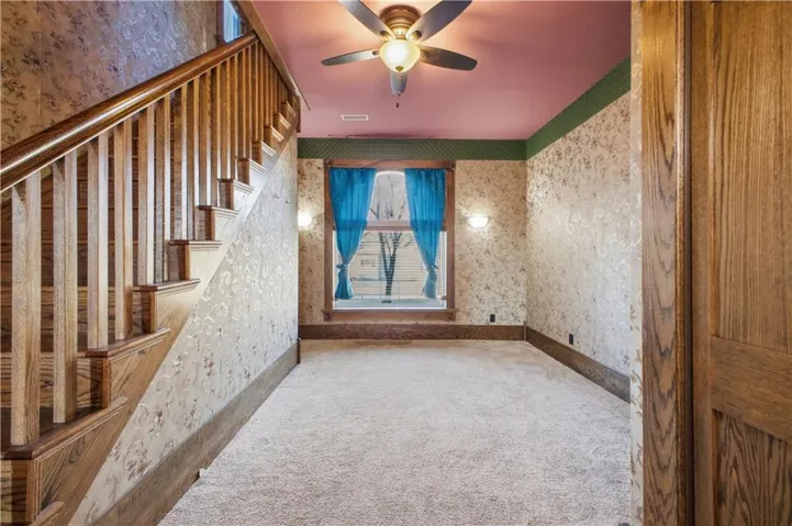 +"PublicRemarks": "As you approach the property, the first glimpse of this beautiful home instantly draws you in with its timeless charm and inviting wraparound porch. Completely redone down to the studs, this home blends historic character with modern updates. It offers beautiful painted ceilings, ornate lighting, and crown molding. Step inside and you’re welcomed by a stunning sunroom filled with natural light—it truly takes your breath away and sets the tone for the rest of the home. The beautiful staircase immediately catches your eye, while the spacious living and dining rooms feel warm and cozy thanks to the fireplace and rich hardwood floors that perfectly complement the space. The kitchen is truly a cook’s dream, featuring quartz countertops, custom-built maple cabinets, and beautiful tile flooring. Just behind elegant French doors is the main-floor bedroom, showcasing even more of the thoughtful details throughout the home. A full bathroom is conveniently located just off the sunroom. Upstairs, you’ll find a cozy sitting area with its own fireplace—perfect for relaxing. This level also includes three bedrooms with one currently serving as a walk-in closet. A full bathroom completes this level, featuring double vanities, a jetted tub, and a separate shower. Each room is just as lovely as the next. Outside, the property continues to impress with a large 55’ x 40’ shop featuring concrete floors, water, sewer, 220 electric, two built-in rooms, one 14-foot door, and two 8-foot doors. The yard is enclosed with a privacy fence. The roof was replaced approximately five years ago. Situated on 1 acre (mol) in a convenient location close to Saint Joseph, Maryville, and Savannah. This home truly has it all—beauty, character, and history. You won’t want to miss this one. Schedule your showing before it’s gone!"