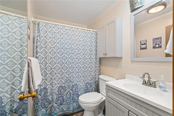 "LongDescription" => "Full bath with curtained shower, vanity, and light wood-style flooring"