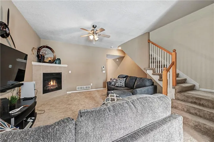 +"PublicRemarks": "Move-in ready with an open, airy floor plan. This well-priced home features a cozy fireplace with newer carpet, and a spacious kitchen with plenty of cabinets, neutral countertops, window and all appliances staying—including the washer and dryer. The patio just off the kitchen is perfect for entertaining and the slider lets in tons of natural light. Check out the half bath and full garage too. Upstairs you’ll find two generous size bedrooms with walk in closet, cathedral ceilings, and two full baths with neutral finishes. Convenient upstairs laundry too. The exterior offers low-maintenance vinyl siding, and maintenance-provided living covers lawn care, snow removal, building maintenance, trash, and insurance—easy living at its best. Located in a highly sought-after school district with quick highway access, shopping, and dining nearby."
