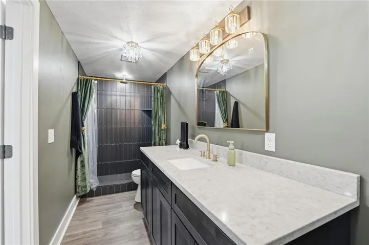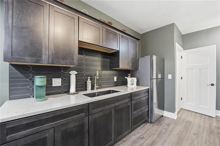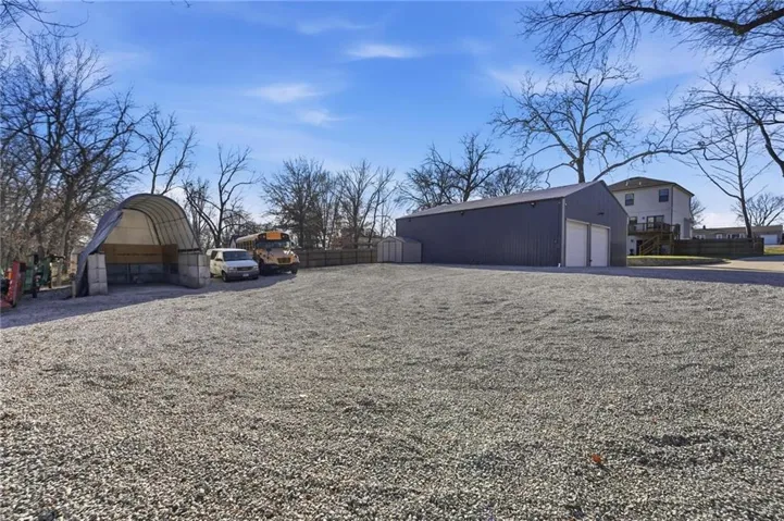 +"PublicRemarks": "Looking for space inside and out? Welcome home…3 bedroom/2 bath home has been recently updated and is move in ready! As you step inside this light and bright home, you will enter the living room featuring luxury vinyl plank floors and an amazing wood burning fireplace. Beyond the living room is the home’s dining space open to the kitchen. Lots of cabinets in the kitchen including a pantry. Kitchen features a huge center island with wine fridge. All appliances stay! Sliding glass door off the dining area leads to the backyard on the 2.37 +/- acre property. Property has 4 outbuildings, a fenced in space for animals, a pond, and a vegetable garden area. The rest of the main floor boasts 2 bedrooms with hallway bath and and owner’s suite including walk-in closet with private bathroom. All lighting and fixtures have been updated throughout. Flooring has recently been replaced and is all solid surface both upstairs and downstairs. Basement has a large family room space with solid surface flooring. Basement also has a non-conforming room that could be a great office or workout room. Laundry room is on this level as well as the home’s 2-car garage. Wash and dryer stay! Basement walks-out to the front of the property to the large driveway space that can hold many vehicles. Lots of trees, lots of space, lots of privacy, lots of possibilities. Just outside of Oak Grove, Missouri…come make this home yours today!"