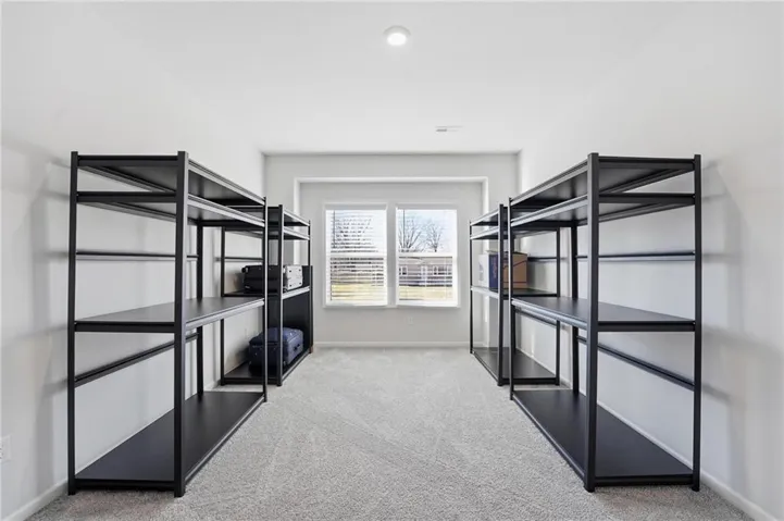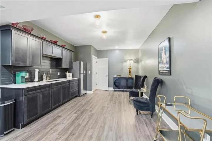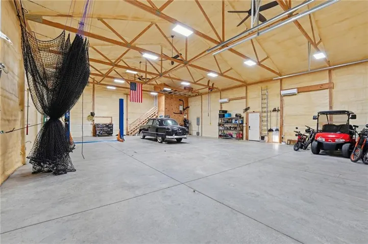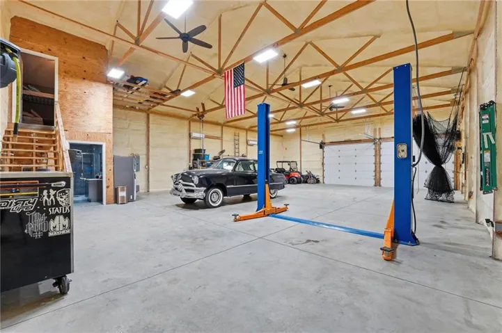 +"PublicRemarks": "A truly rare offering—this near-new, luxury-appointed home sits on just over an acre on a wooded lot & includes an elite 40x60 heated/cooled outbuilding ideal for a home business, collector, or serious hobbyist. The immaculate shop features a finished office & full bath, with elegant iron gates providing secure access to the shop & backyard. The striking design showcases a stucco & stone exterior, inviting front porch & double front doors. Inside, LVP flooring flows through the great room anchored by a floor-to-ceiling stacked stone gas fireplace. The bright, elevated kitchen offers custom cabinetry, quartz counters, oversized island, walk-in pantry, stainless appliances & chevron subway tile backsplash. The main-level primary suite is expansive with dual walk-in closets & a spa-inspired bath featuring quartz double vanity, freestanding soaking tub & tiled walk-in shower with dual heads, including rain. A functional laundry/mudroom provides excellent storage & drop zone. Upstairs features a generous loft (could convert easily to a bedroom), oversized secondary bedrooms with walk-in closets & a flexible adjoining space off the 4th bedroom—ideal for office, gym, private living or non-conforming 5th bedroom. Hidden storage behind a secret bookcase in the 4th bedroom walk-in closet adds a unique touch! The finished lower level offers exceptional living space with wet bar, black & gold backsplash, granite counters, full bath & second laundry hookups - perfect for entertaining or multi-generational living! Enjoy wooded views from the deck or expansive lower patio. Full sprinkler system with individually irrigated flower pots. Security system w/ monitor & cameras stays! Set on a private, oversized homesite designed for entertaining, working & unwinding—this property seamlessly blends luxury, land & lifestyle. Tucked just outside city limits yet within Liberty School District—this is a once-in-a-generation opportunity."