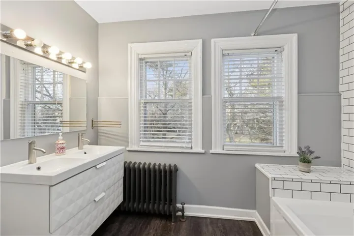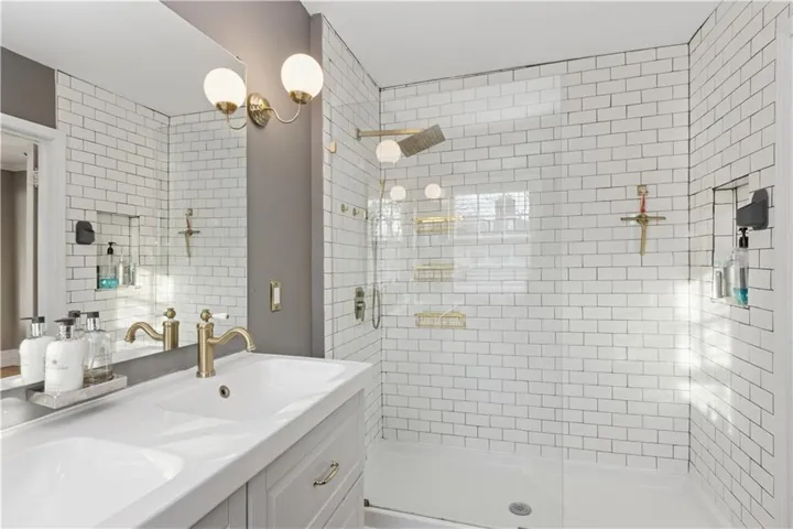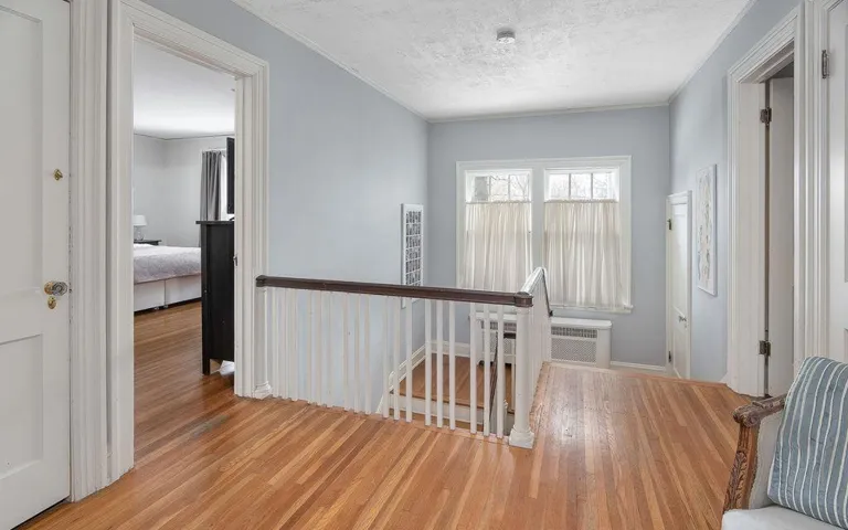 +"PublicRemarks": "You will love this stately home because of the grand foyer with crown molding and the curving staircase leading to 4 spacious bedrooms including the updated master ensuite with a gorgeous bath and double closets. The completely updated kitchen features quartz counters, stainless steel appliances and a mudroom with a 1/2 bath. There's a breakfast nook which opens to the large dining room with plenty of room for your guests. The remodeled, enclosed sunroom has heated floors and, with French doors, is used as a private office. The roof and gutters are new as is the AC. There's a level 2 EV charger in the 2 car garage. One of the boiler tanks was replaced in 2025. The back yard surrounded by a privacy fence has a 6 person hot tub that stays. The 3rd floor features a private bedroom suite with a bath, perfect for guests. Come take a tour today!"