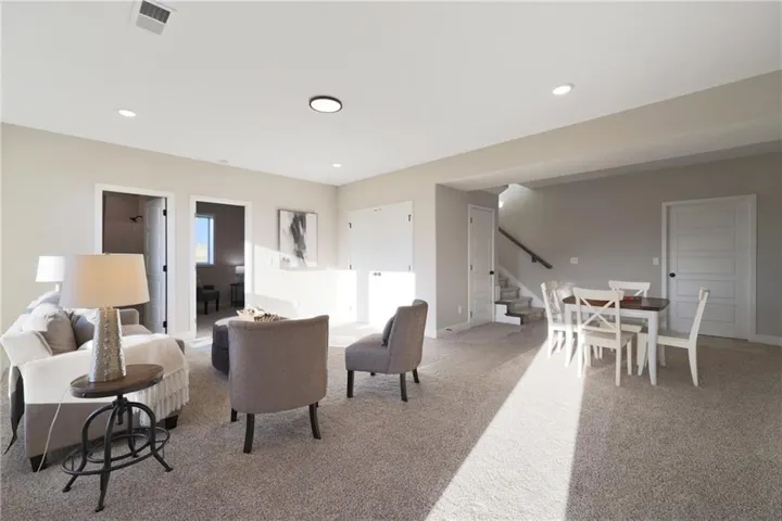 "LongDescription" => "Lower Level featuring a walk out light carpet, recessed lighting, and stairs"