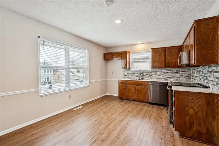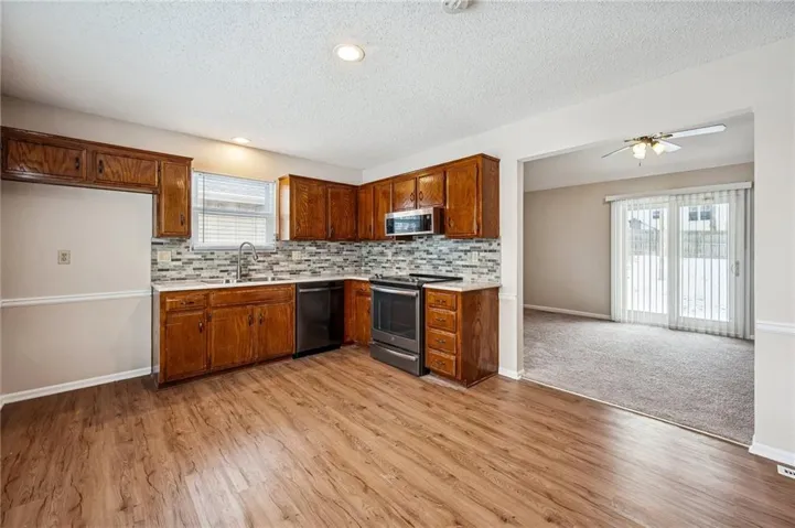 +"PublicRemarks": "This updated raised ranch is easy to love and easy to live in. With a new roof, fresh interior paint, and new windows, it is truly move in ready. Vaulted ceilings and great natural light give the main living space an open, welcoming feel, and the eat in kitchen is just right for everyday meals and conversation. The primary bedroom includes an updated private bath, with two additional bedrooms and a second refreshed full bath offering flexibility for guests or a home office. Out back, the fully fenced yard is perfect for relaxing or gathering with friends. The unfinished basement is ready to convert into a rec room or home gym! Conveniently located near Zona Rosa shopping, dining, and major highways, this home has been well cared for and is ready for its next chapter."