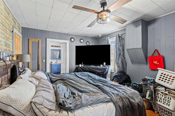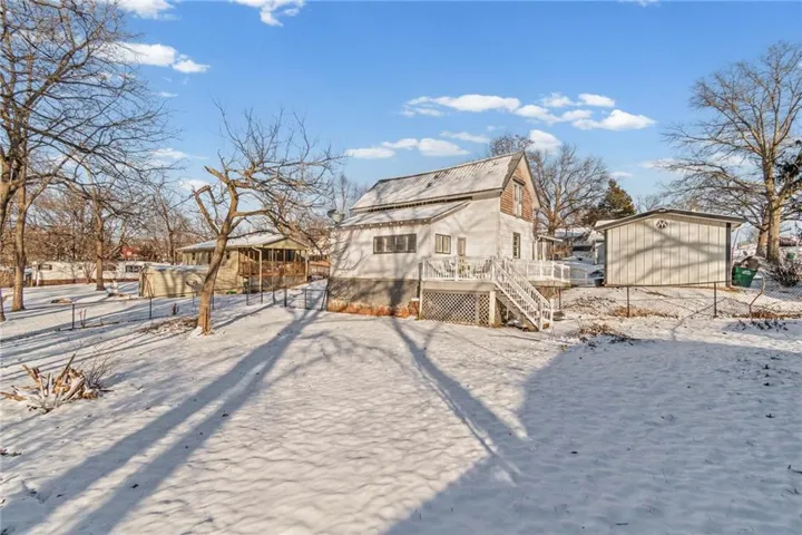 +"PublicRemarks": "Welcome home! This 1.5-story home has space for everyone! The main floor includes a bonus room off the living area, a bedroom, and a designated laundry space, with three additional bedrooms upstairs. The kitchen provides ample cabinet storage and counter space! The full unfinished basement offers usable space for storage, projects, or equipment, with a separate area that opens to the backyard. Outside features include an oversized deck with ramp access, a fenced yard, and a double gate ideal for camper or trailer parking. A detached shop with a concrete floor adds workspace and storage. Located near the community gym and close to local amenities, this home offers functional spaces inside and out."