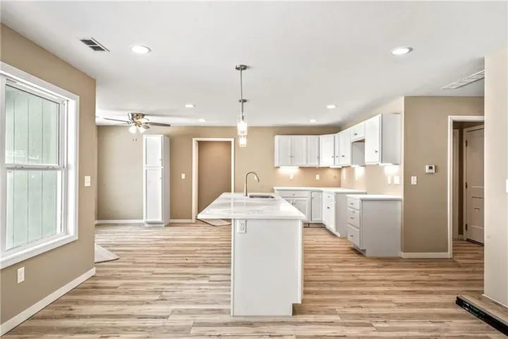 +"PublicRemarks": "New construction ranch in East Lynne! This 3-bedroom, 2-bath home offers approximately 1,410 sq. ft. with an open-concept layout, a bright and inviting great room, and a chef-inspired kitchen featuring abundant cabinetry and a large island with seating for up to six—ideal for cooking, gathering, and entertaining. The private primary suite includes a walk-in closet and a spa-like bath. Two additional bedrooms share a full bath, offering flexibility for guests, a home office, or hobby space. A dedicated laundry room and drop zone add everyday convenience. Enjoy outdoor living with a covered front porch and covered back patio, plus an attached 2-car garage. Affordable new construction in a quiet small-town setting with easy access to Harrisonville, Pleasant Hill, and Lee’s Summit."