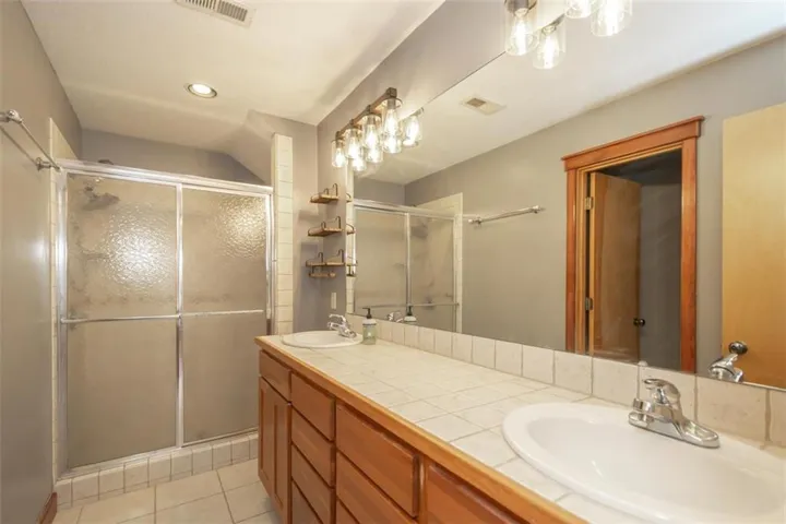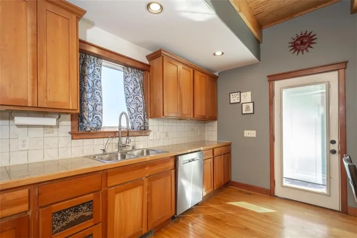 The private, fenced backyard is well suited for relaxing or entertaining with a large deck and mature landscaping. Additional features include a 3-foot tall crawlspace with interior access, oversized garage with built-in storage, landscaped yard, and a primary suite with double sinks and walk-in closet. This home offers warmth, privacy, and unique architectural features rarely found together, and quick possession is available.